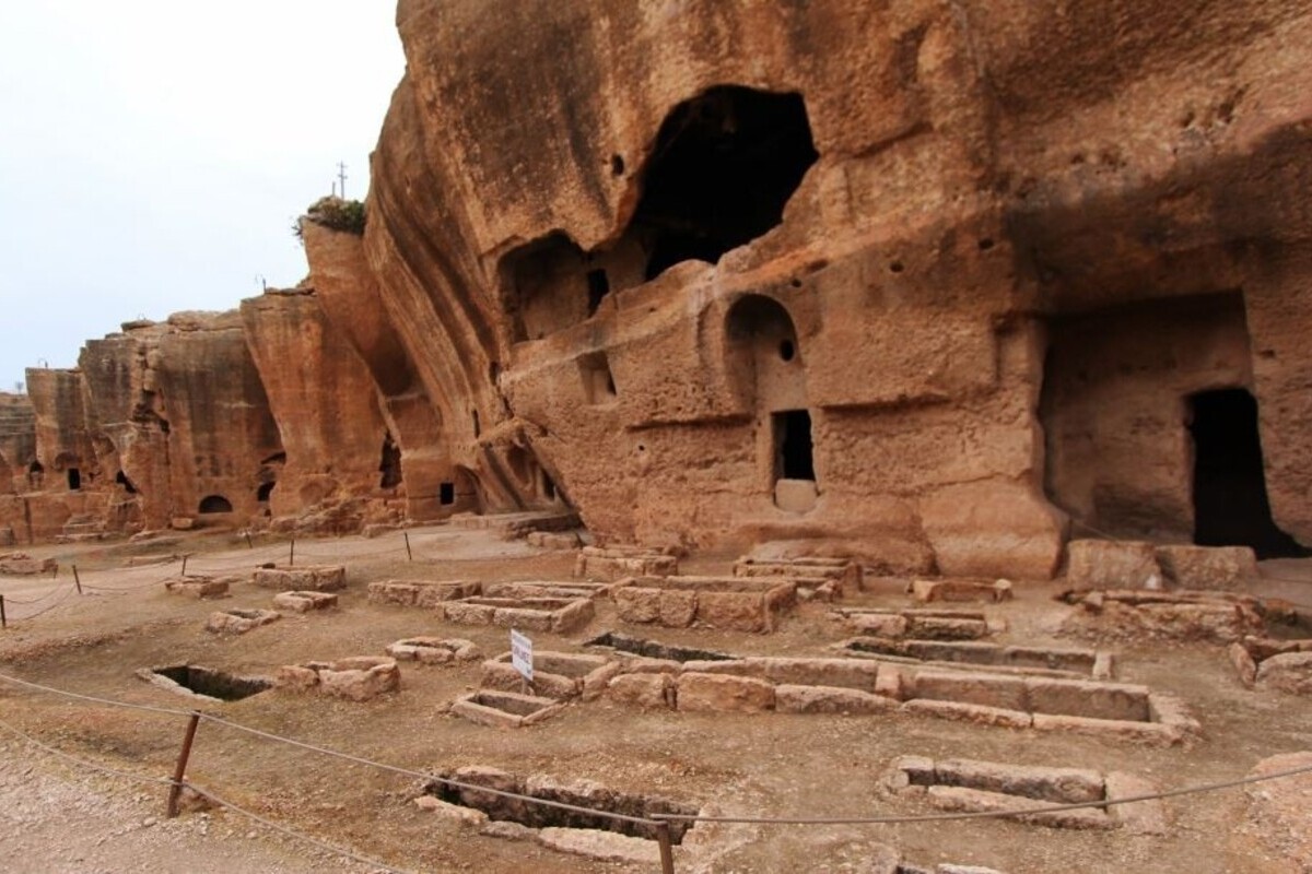 После каменную резку, оставившую гладкие фасады, превратили в кладбище, где в скалах вырезали гробницы. Там можно встретить три типа захоронений: гробницы в скалах (VI-VIII века), саркофаги (VI-VIII века) и простые урны для погребения (VIII – XIV века).