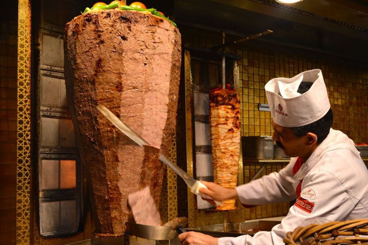 Дёнер-кебаб – классическое турецкое блюдо, типичный представитель уличной кухни. Мясо жарят на вертикальном вертеле, постоянно вращающемся. Обычно используют баранину или говядину, иногда курицу. Готовое мясо нарезают тонкими ломтиками, приправляют специями и заворачивают в лаваш.